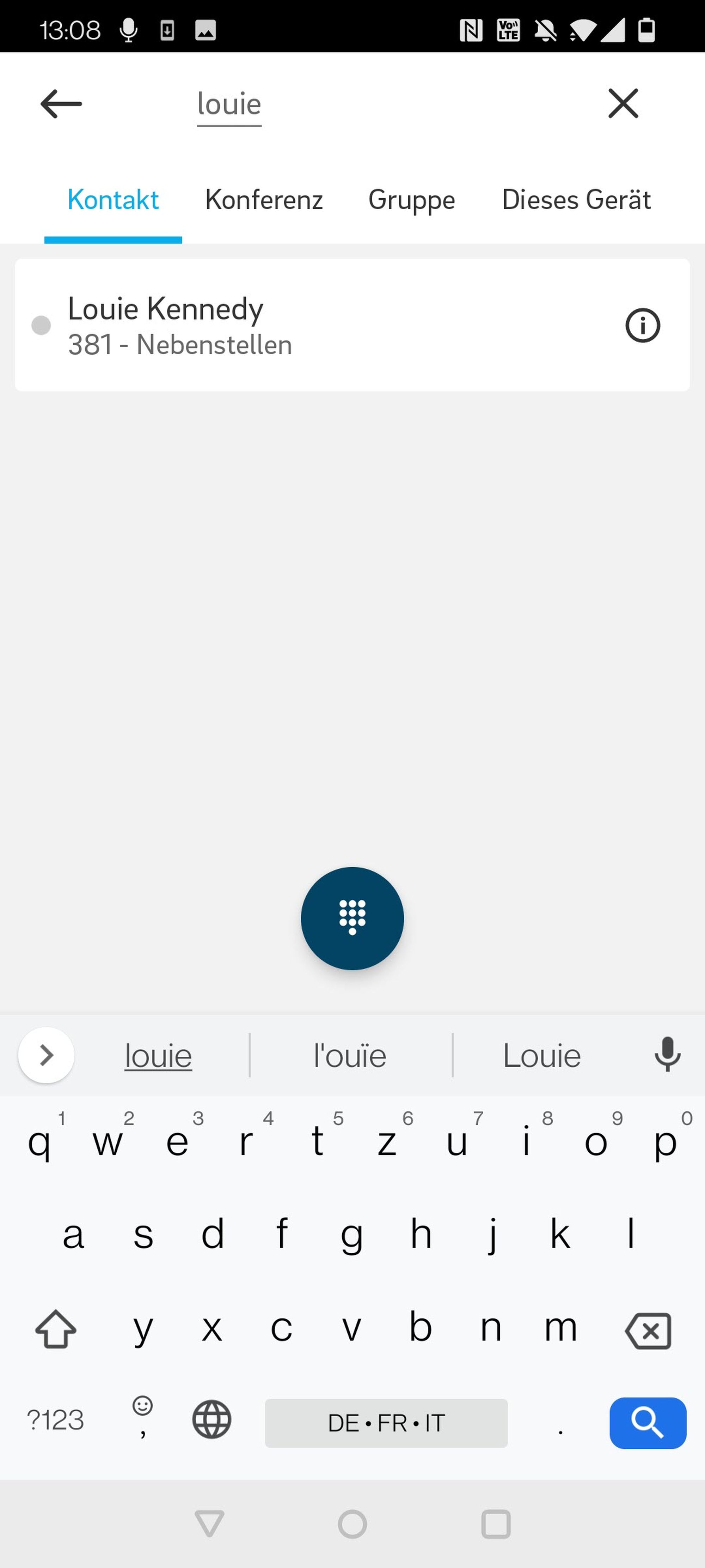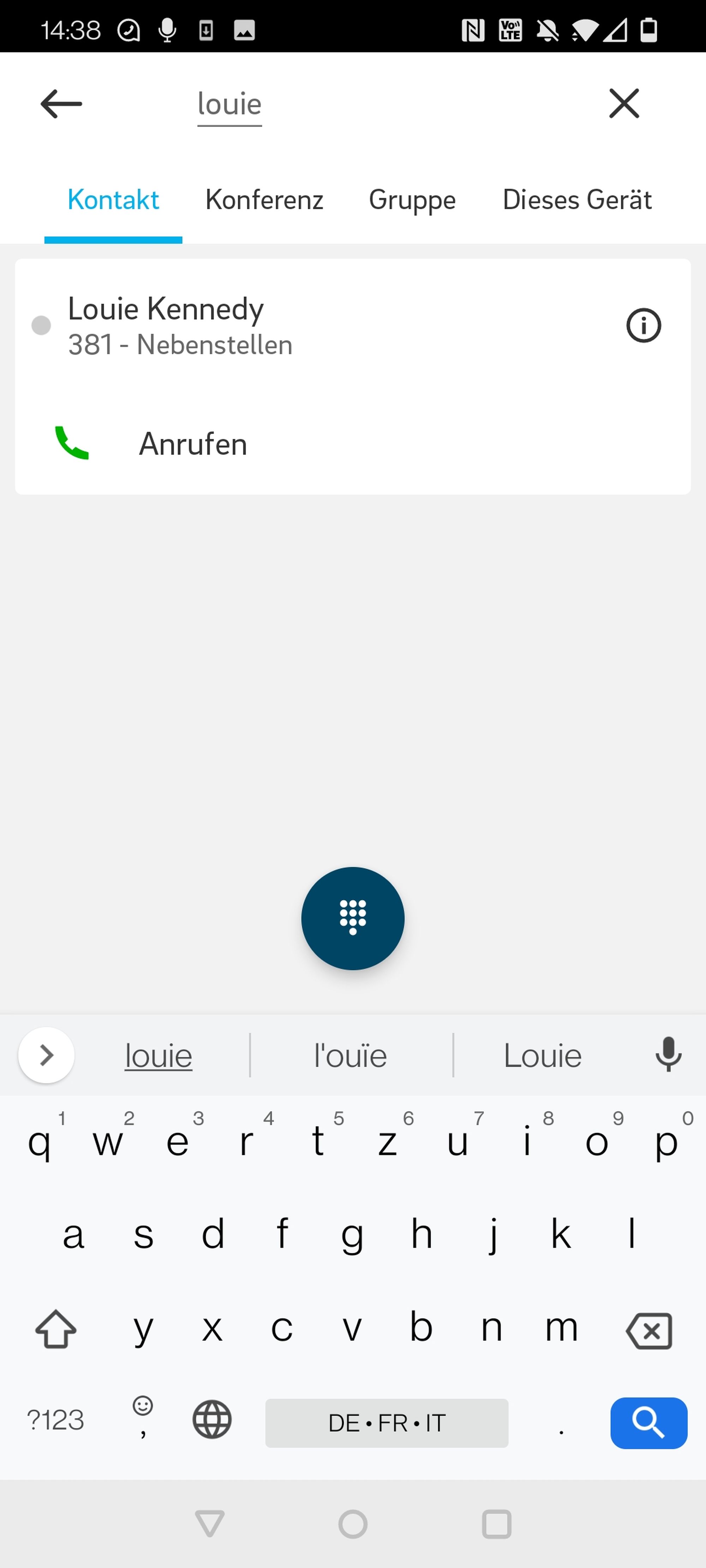 Der Anruf wird zum ausgewählten Kontakt weitergeleitet.