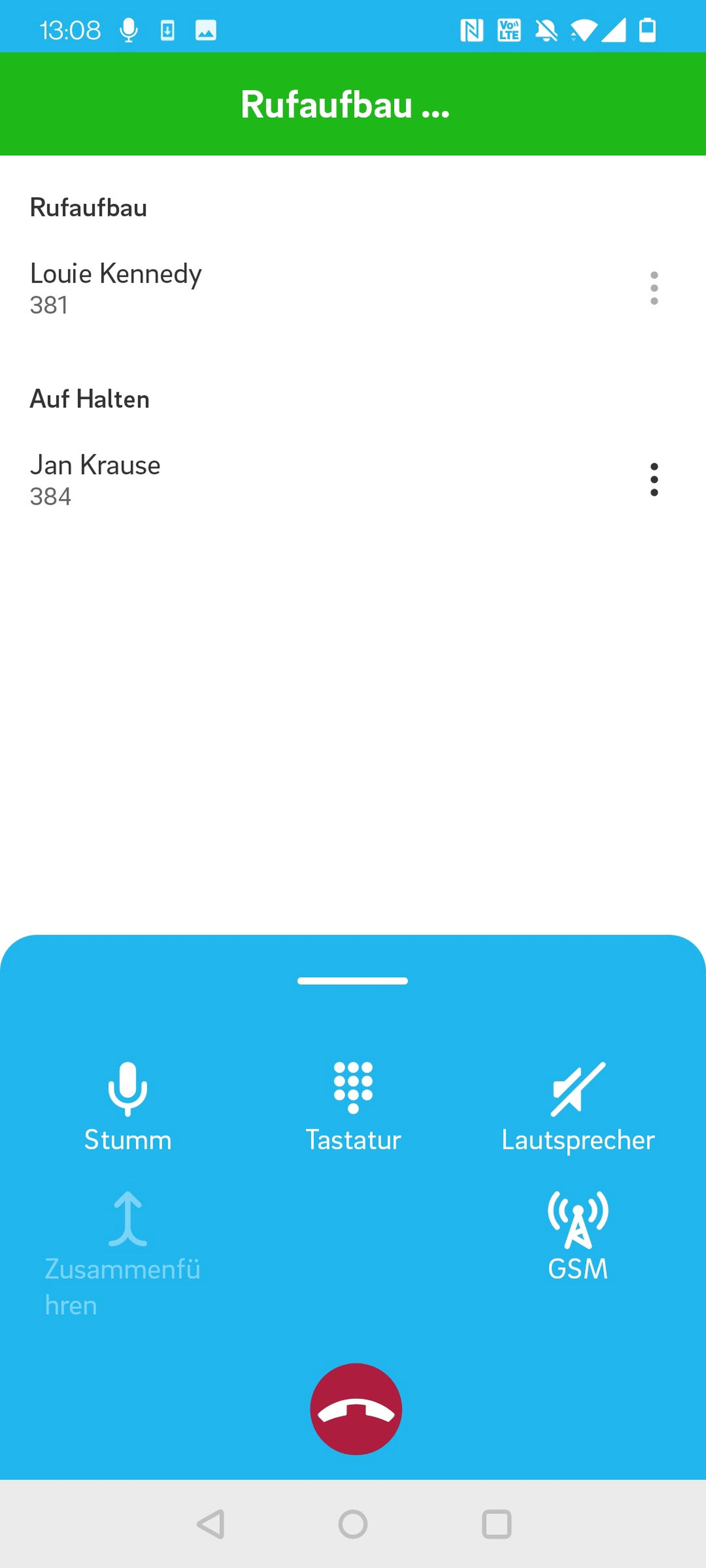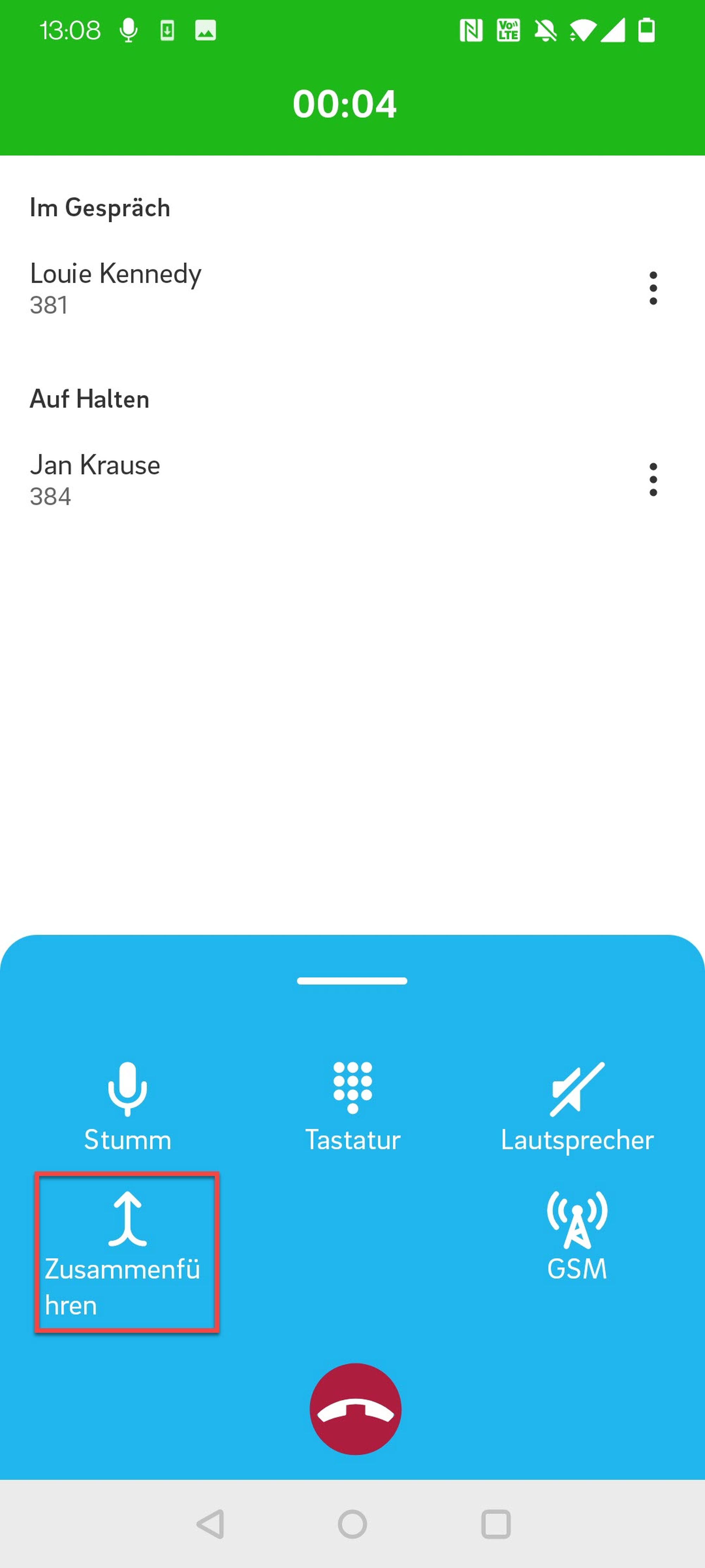 4. Rufen Sie den ausgewählten Kontakt an. Beachten Sie, dass der erste Gesprächspartner in der Zwischenzeit auf Halten gesetzt wird.