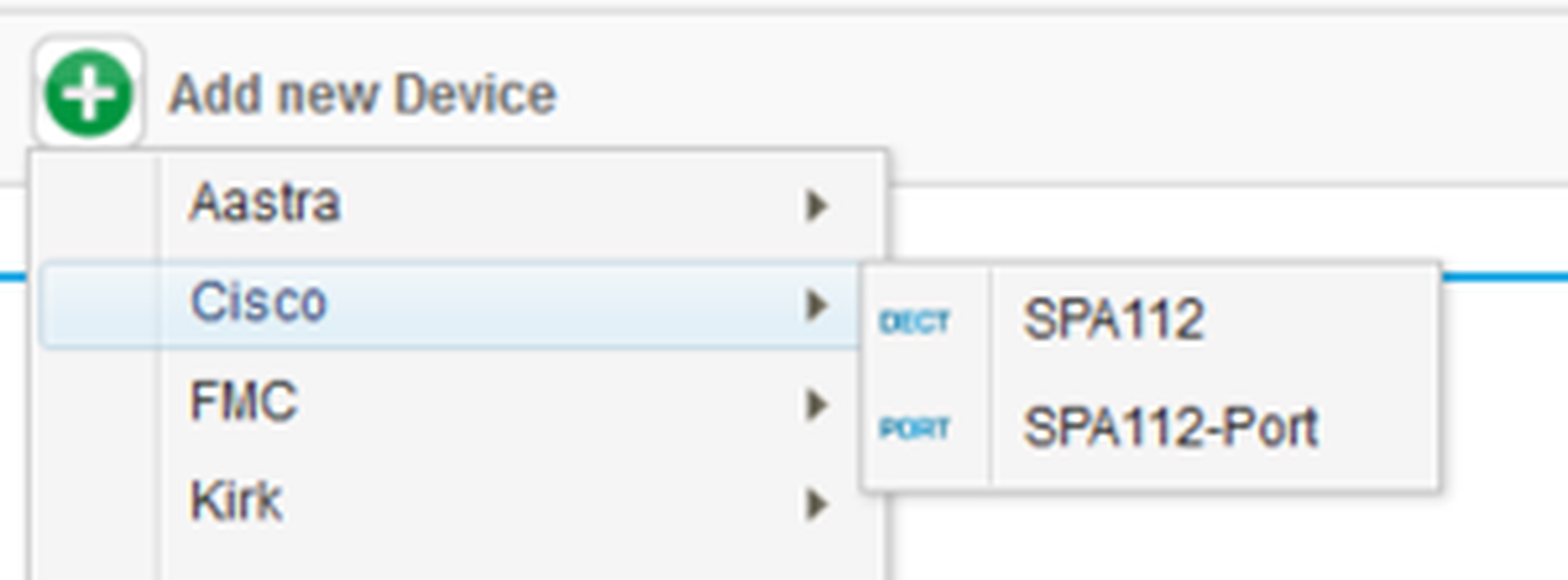When ordering the Cisco SPA112 from your provider, the device is automatically registered to the telephone system. Therefore, please check whether or not the MAC address is already registered on your administration portal (portal.nfon.net) under ELEMENTS / Devices first. If not, please add a new device and select Cisco SPA112 from the list.