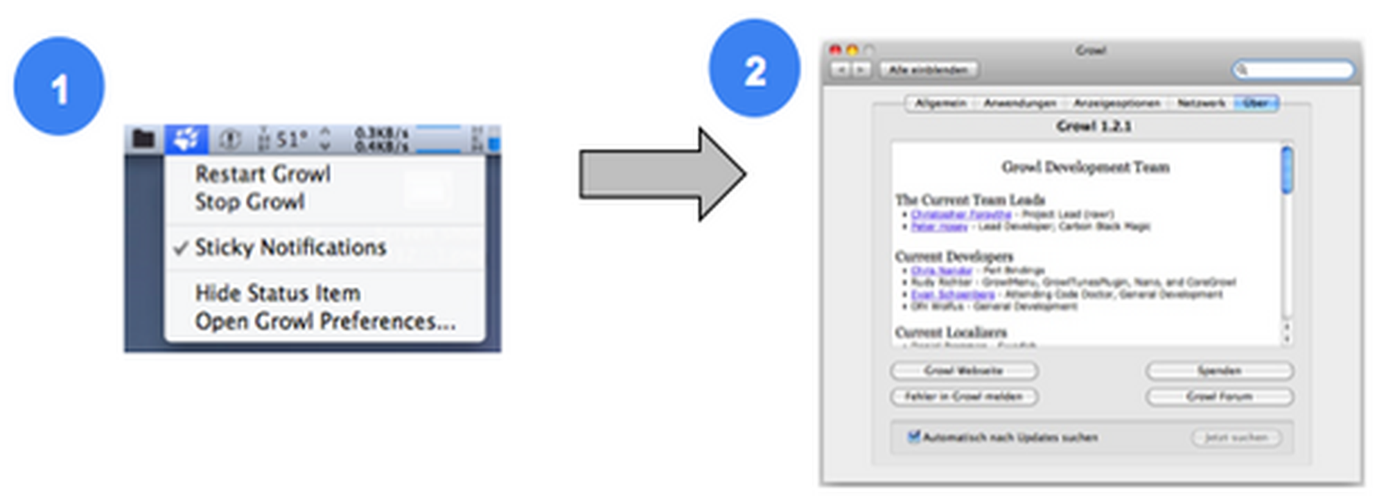 After completing the installation, Growl now appears in the status bar.From there, you can access the Growl settings and configure the programme according to your requirements.