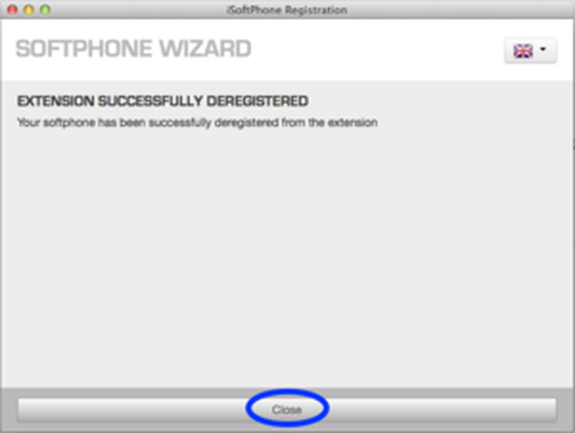 Your iSoftPhone has been successfully deregistered from the extension. Please click "Close". Afterwards, you'll be able to create another extension or to loggin an existing one. Then please click "Change Account..." as described above.