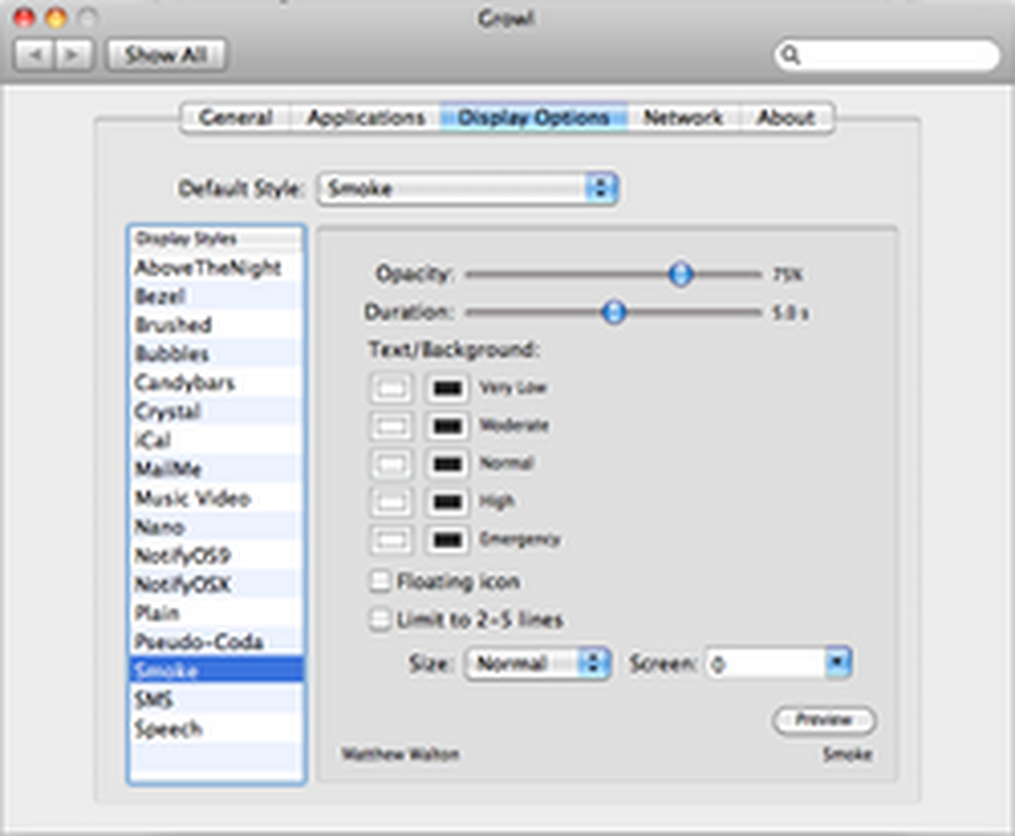 Growl is a global notification system for Mac OS X. Programmes inform the user of important events through Growl.The priority of these are entirely configured by the user.