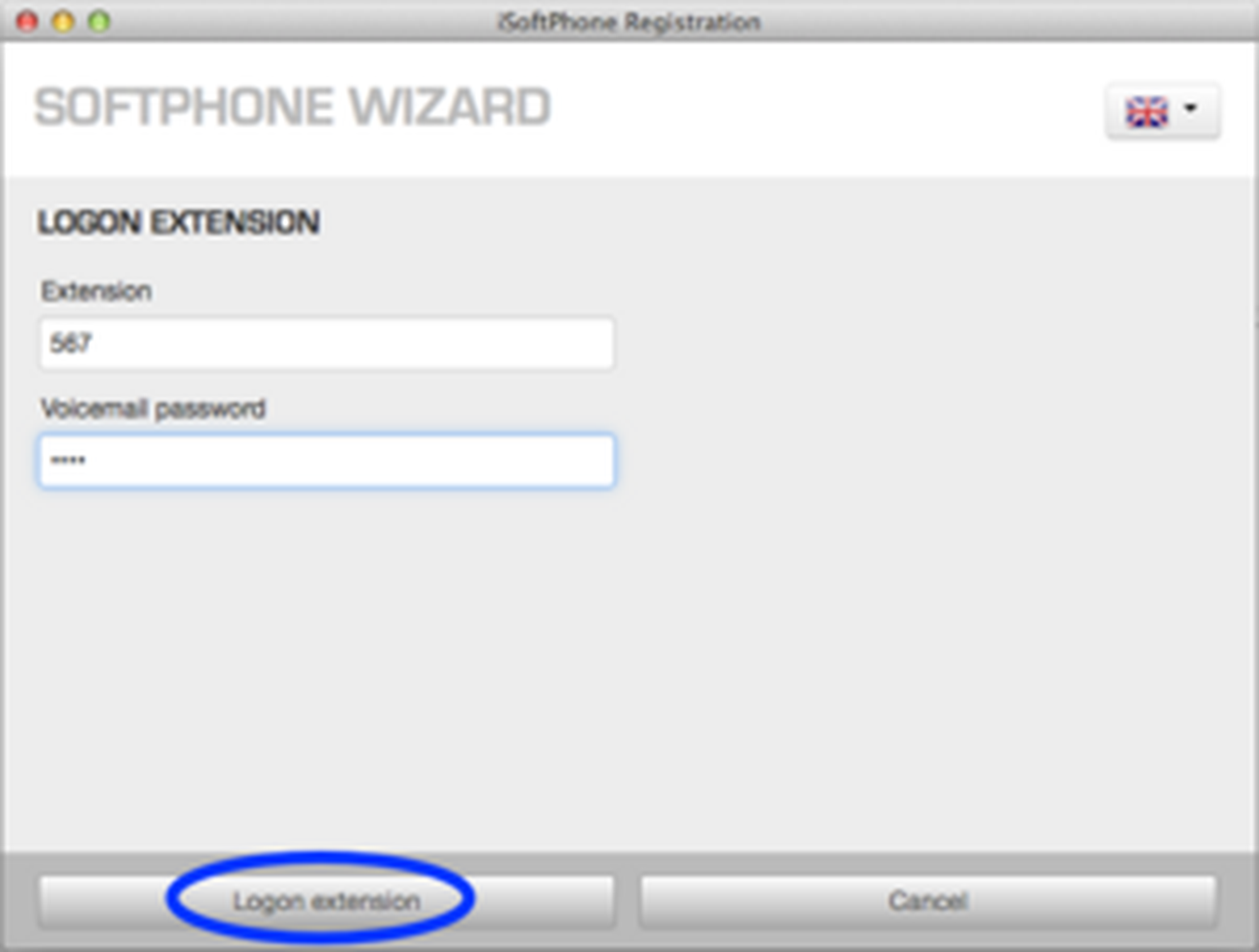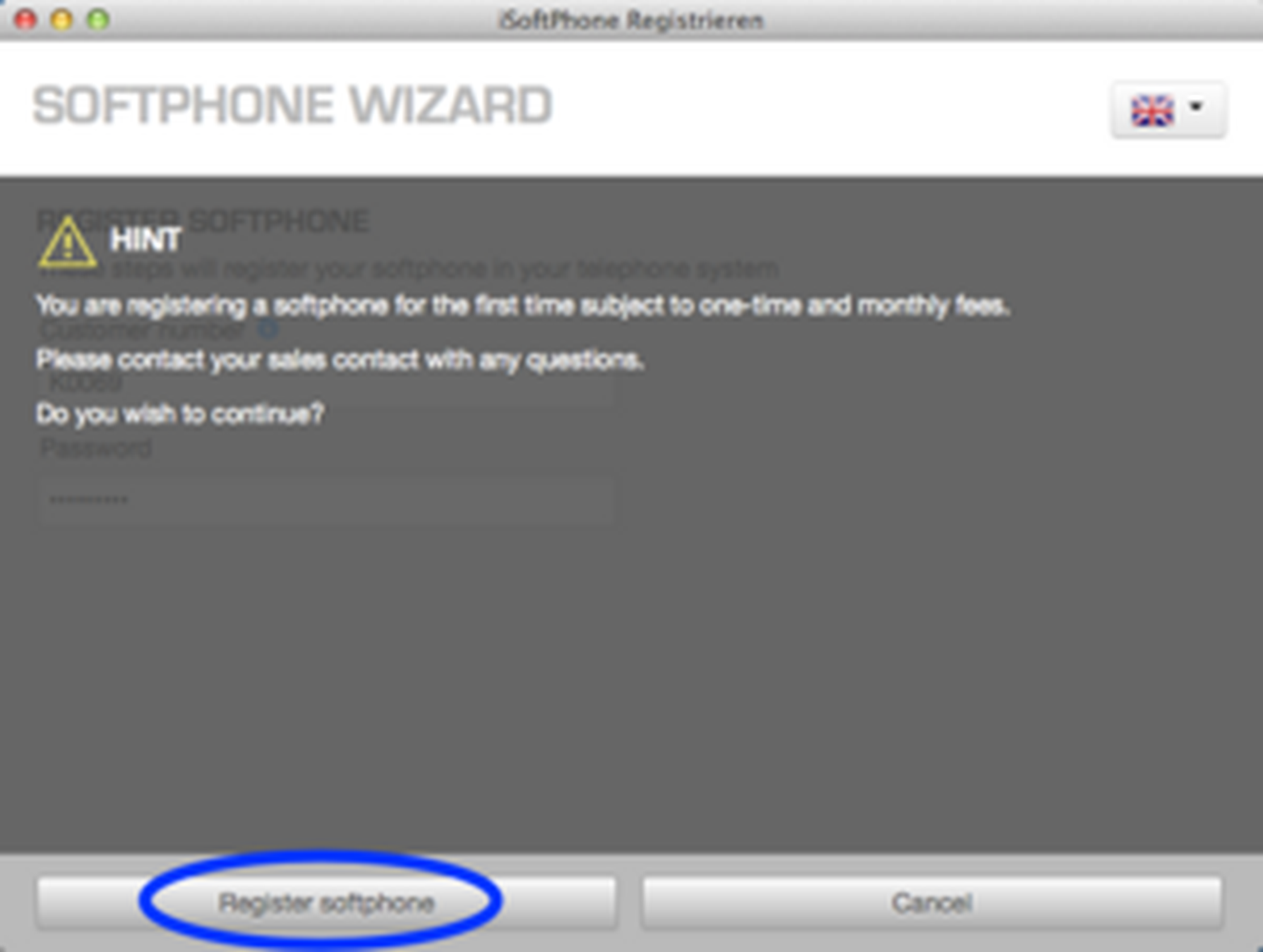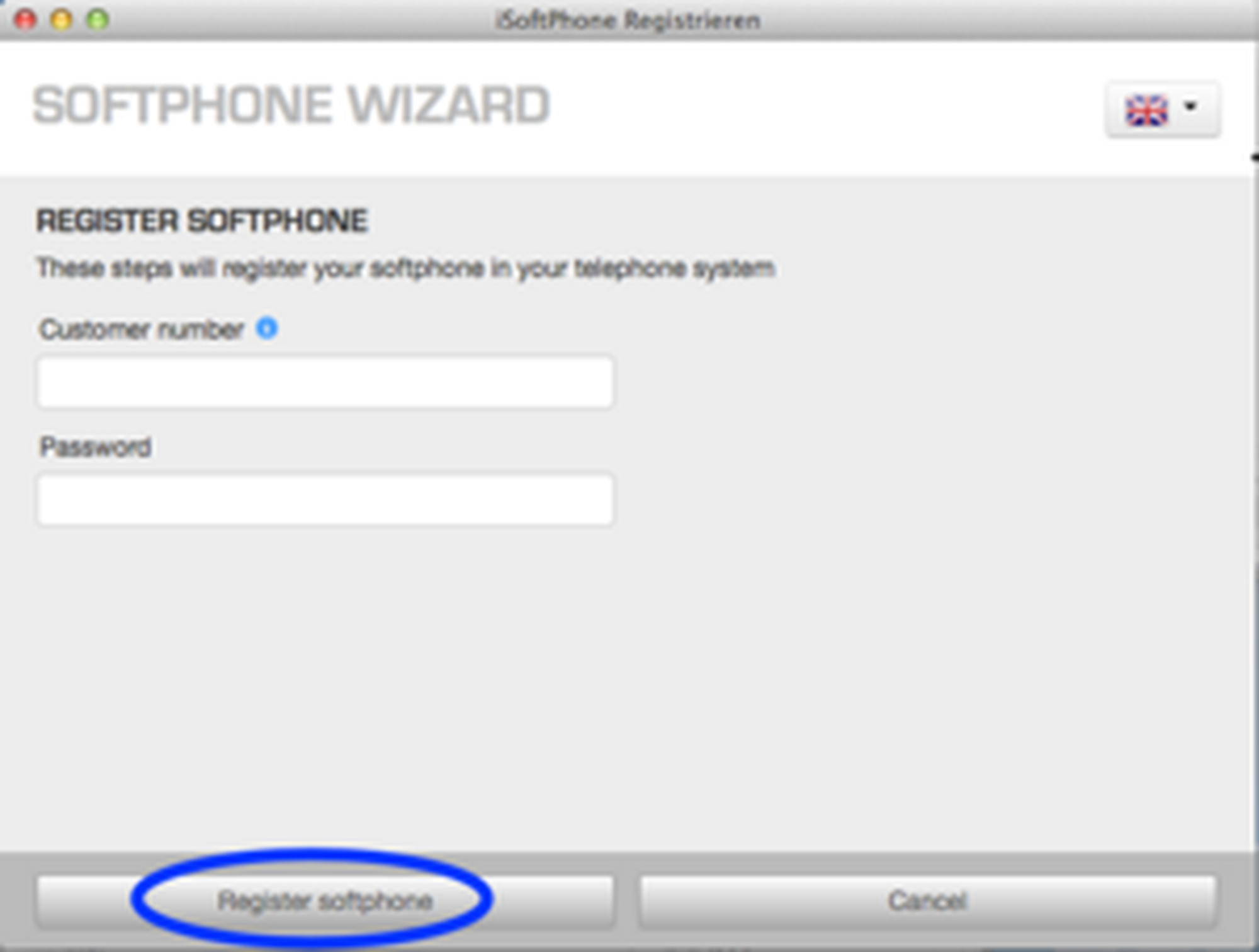 Please sign in with account number and user password. Please choose then "Register softphone".