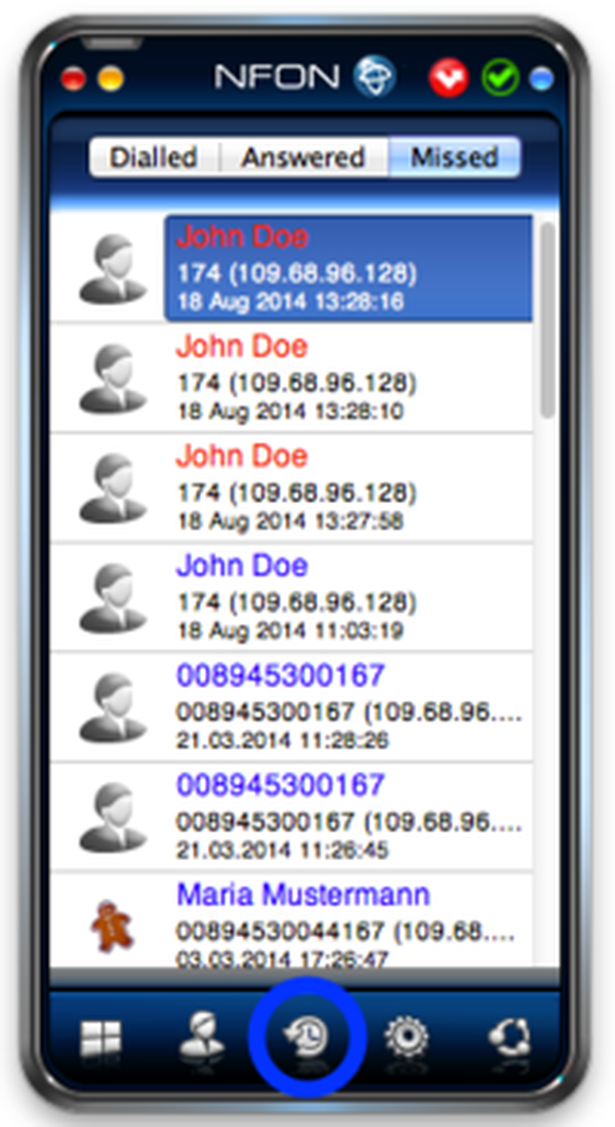 ) provides an overview of outgoing, incoming and missed calls with the respective details (name, telephone number, date, time).To return a call, simply double-click on the entry and confirm the call.You are now connected.