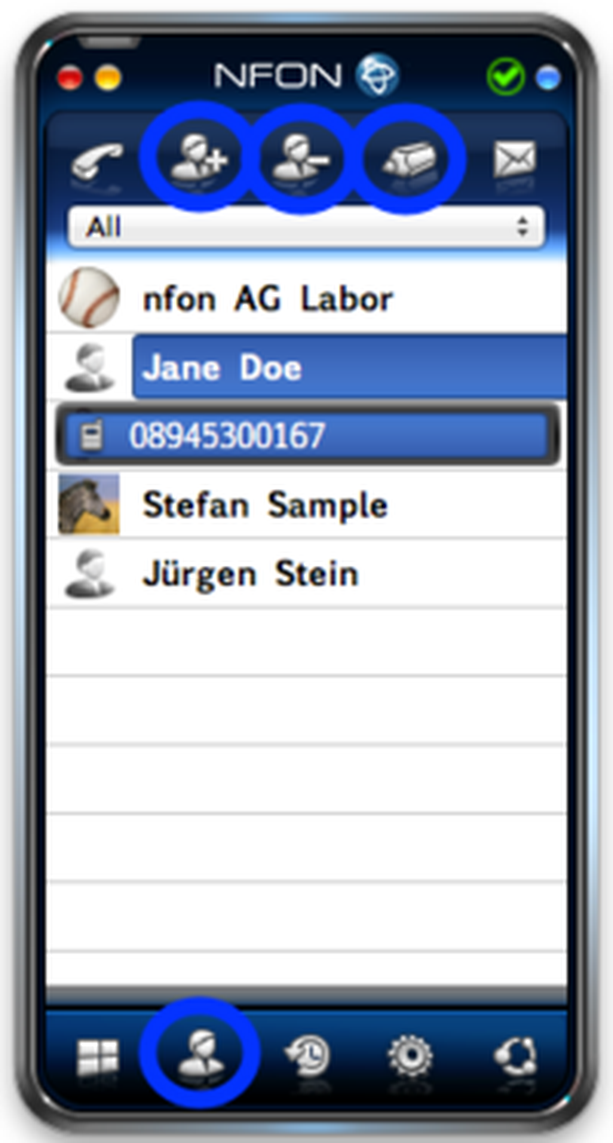 . Double-click on the contact, to select it and select the respective telephone number.Then confirm this, to connect.