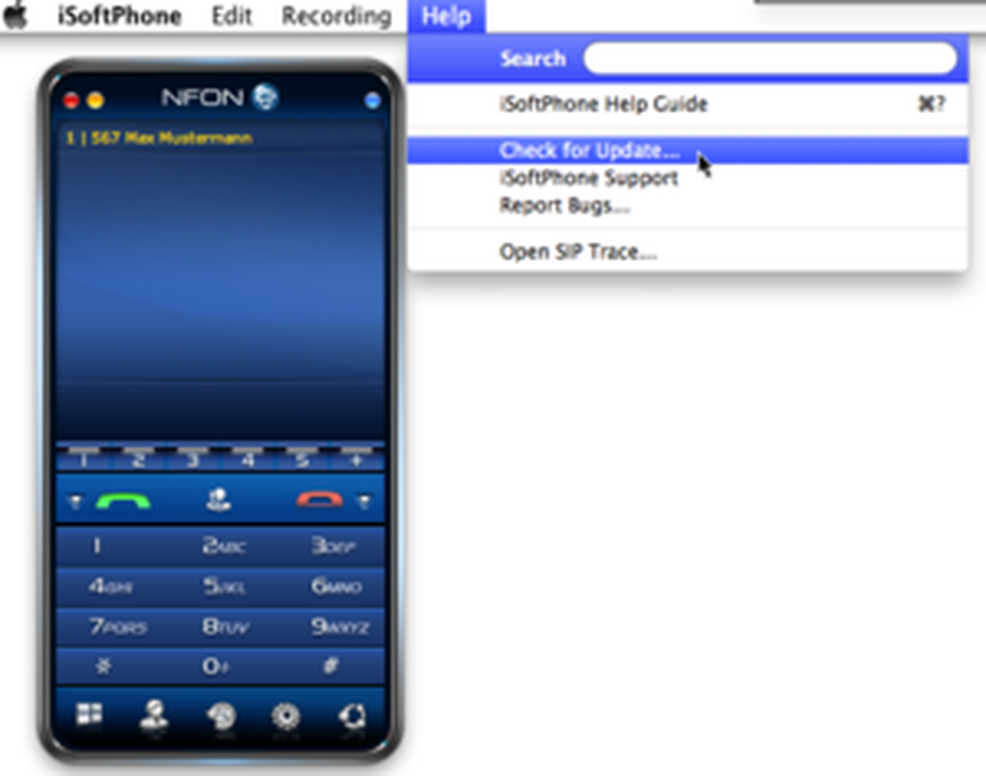 1. Please click "Help" and then "Check for Update..." in the iSoftPhone menu bar.
