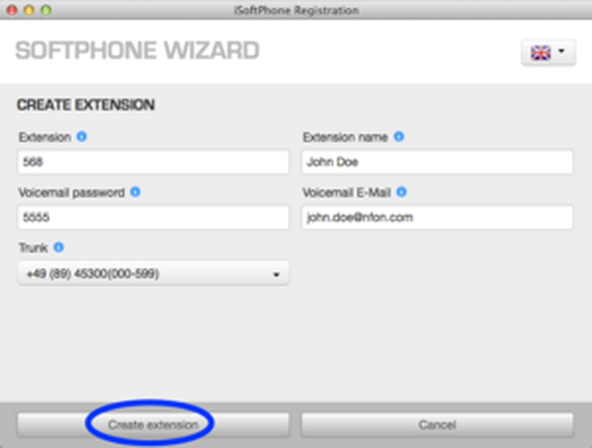 You have already configured the iSoftPhone for an extension and would now like to switch to a different extension.