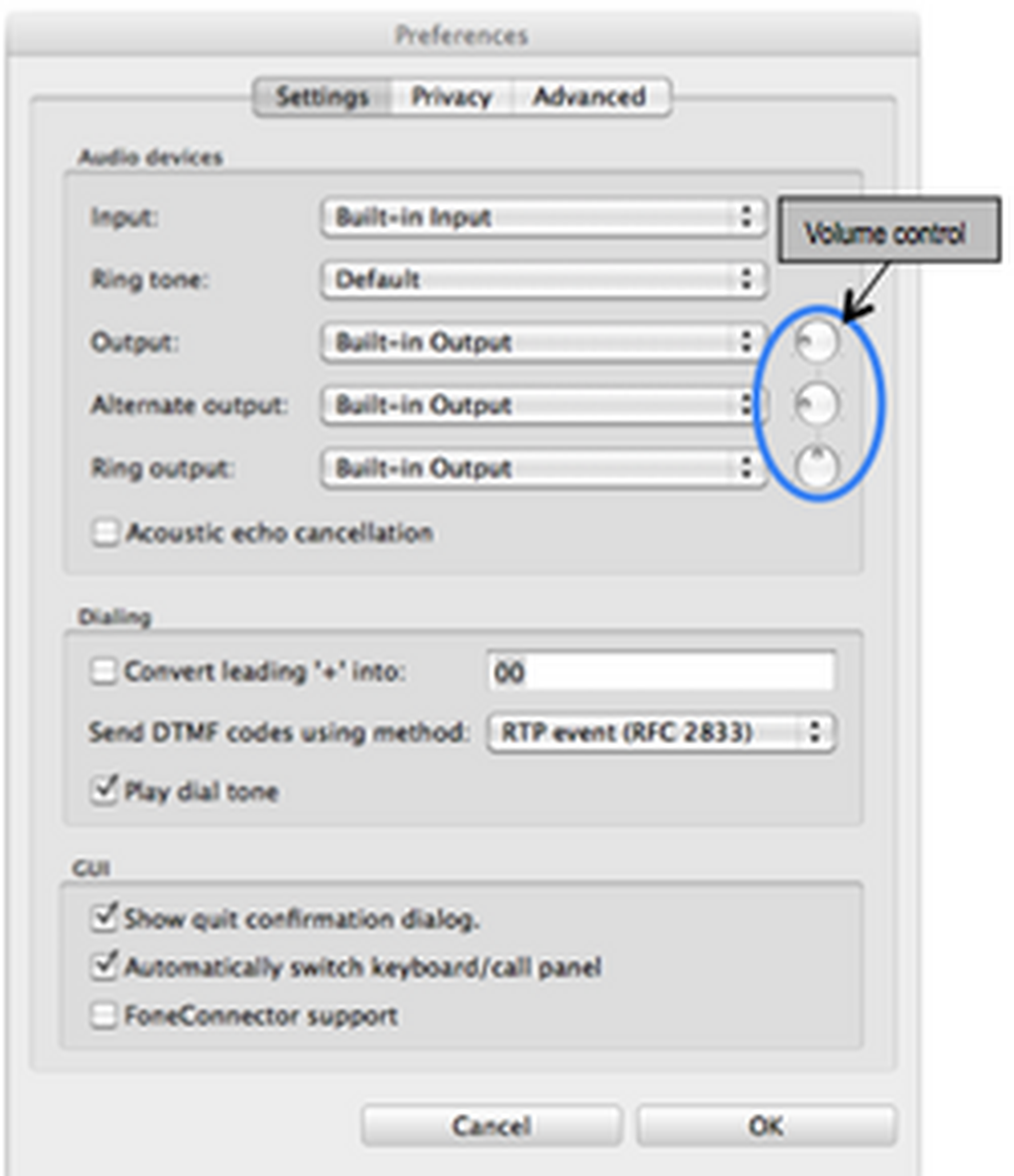 If you do not wish to use the integrated microphone and speaker on your Mac OS X device, you can configure your headset under “Preferences”.