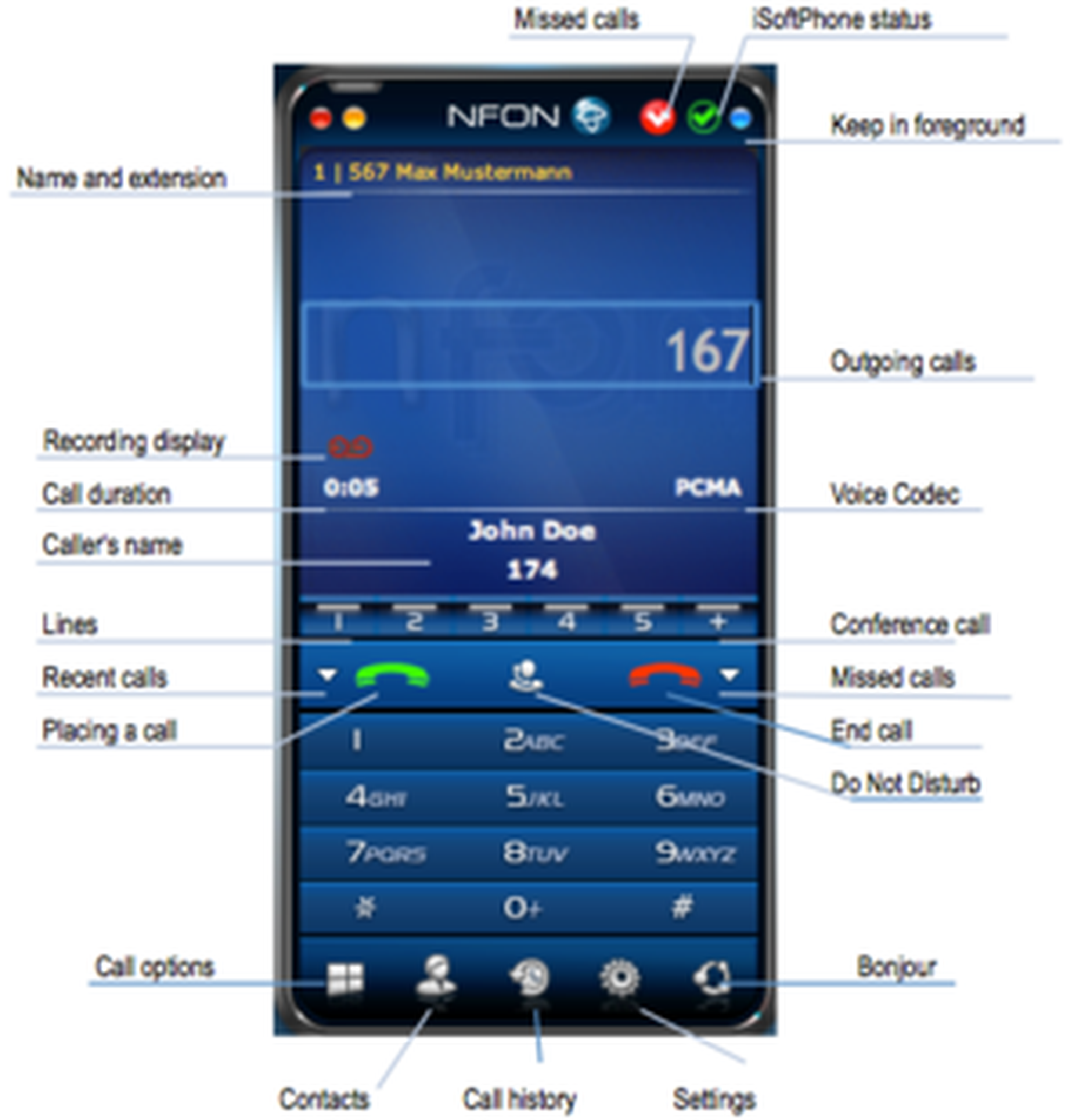 The iSoftPhone allows you to integrate the external Mac OS X software “Growl”. Please note however, Growl is free, generally available software, which is not supported by the NFON AG. Furthermore, the NFON AG does not assume any liability for problems or damage resulting from installing Growl.