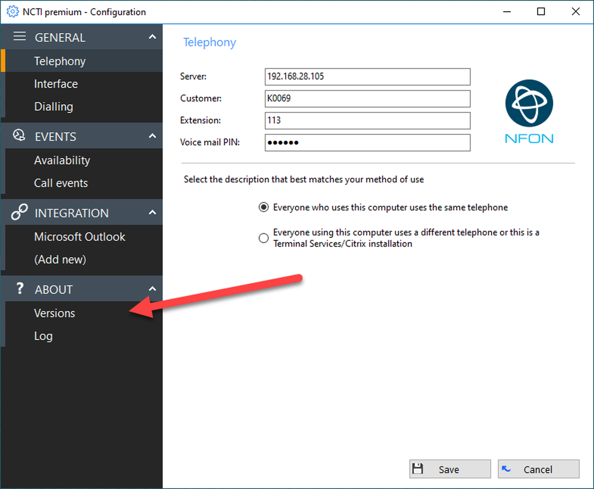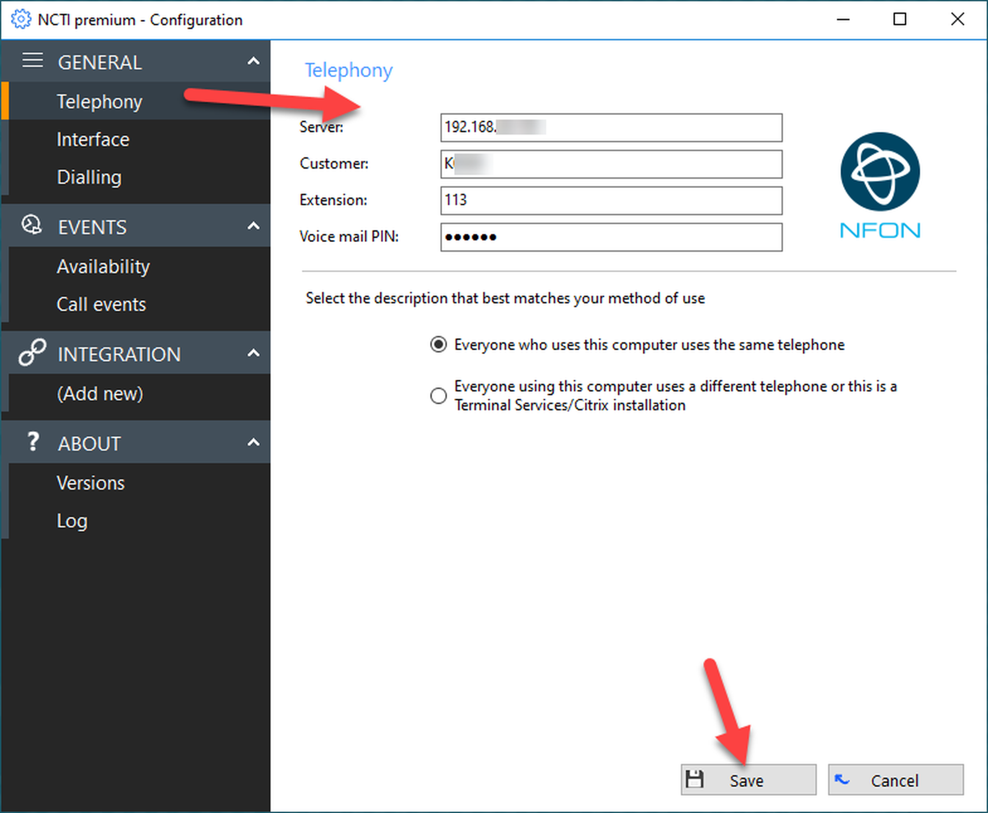 To configure your NCTI premium / CRM Client with your IP telephone, both have to be connected to each other. Follow these steps: