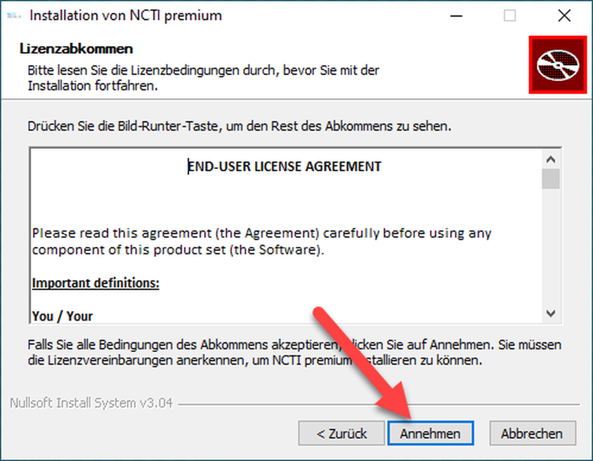 The following steps guide you through the installation of the NCTI premium client.
