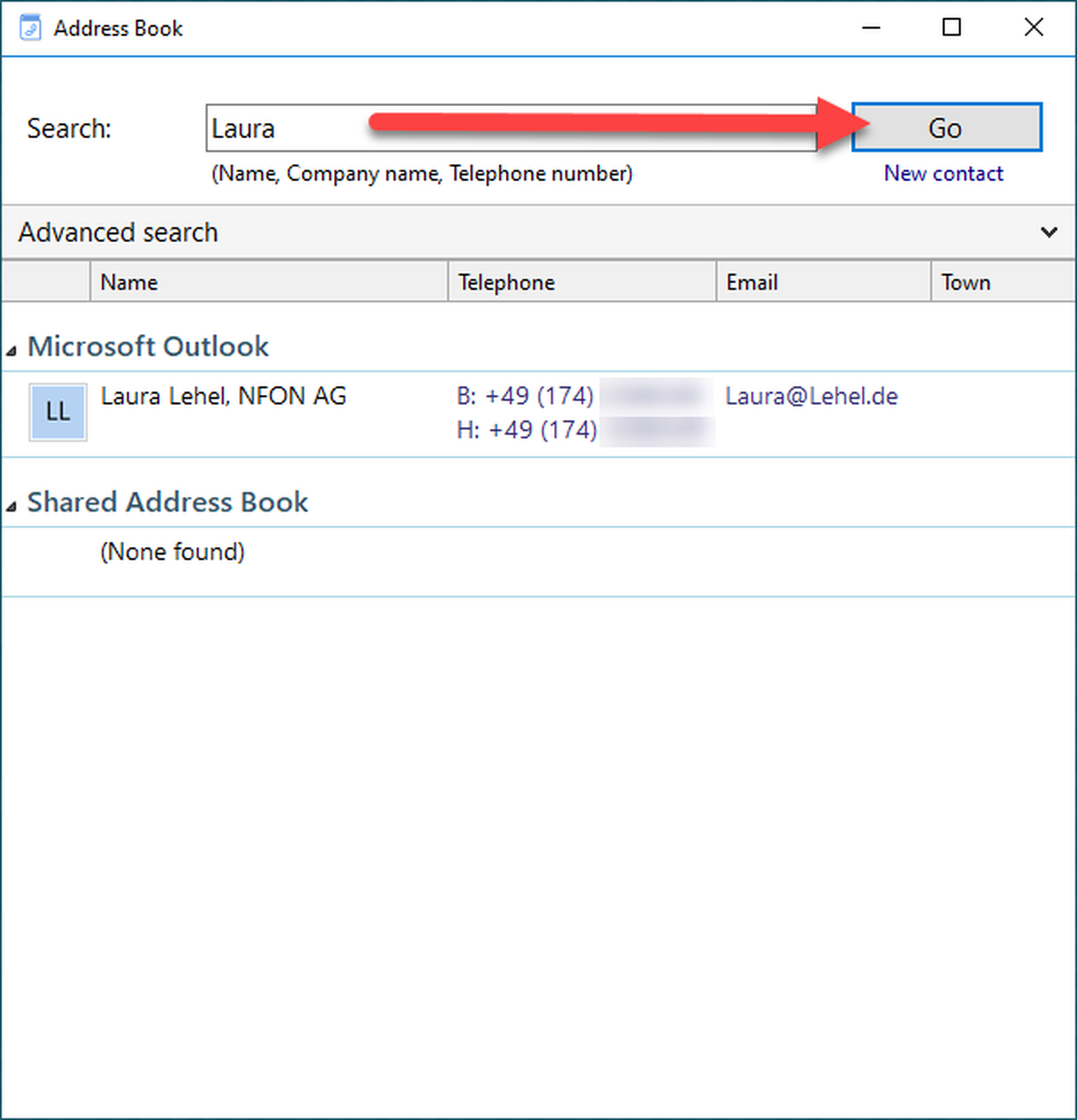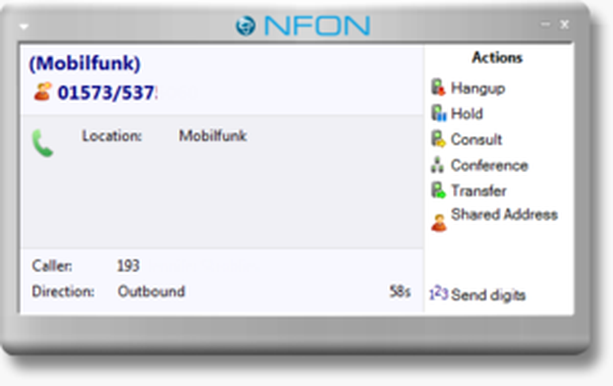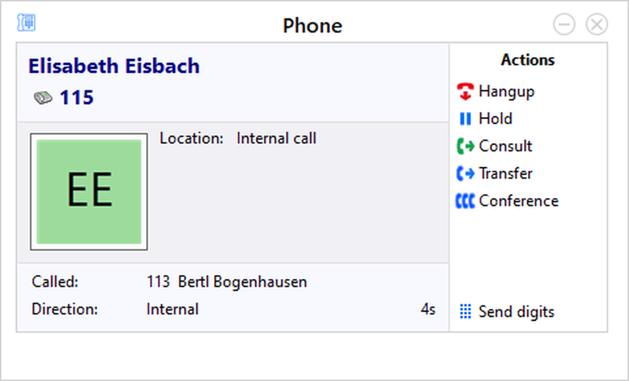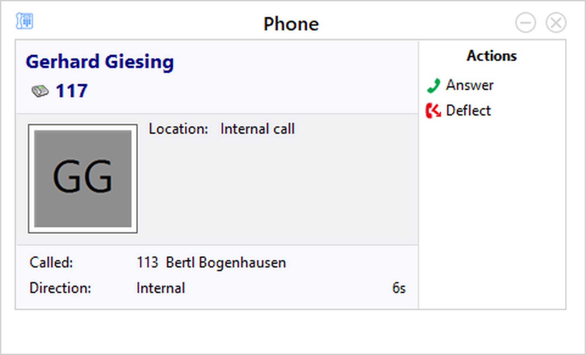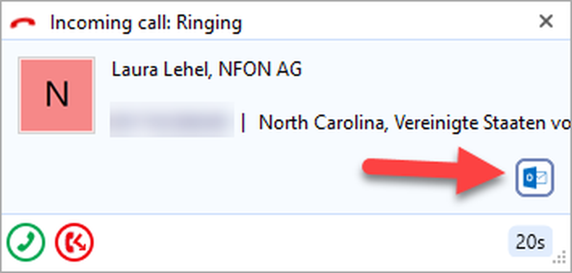 If a contact from your Outlook adress book is calling you, the contact details will be shown in a pop up as soon as the call is initiated. Furthermore, the data is displayed in the telephone window.