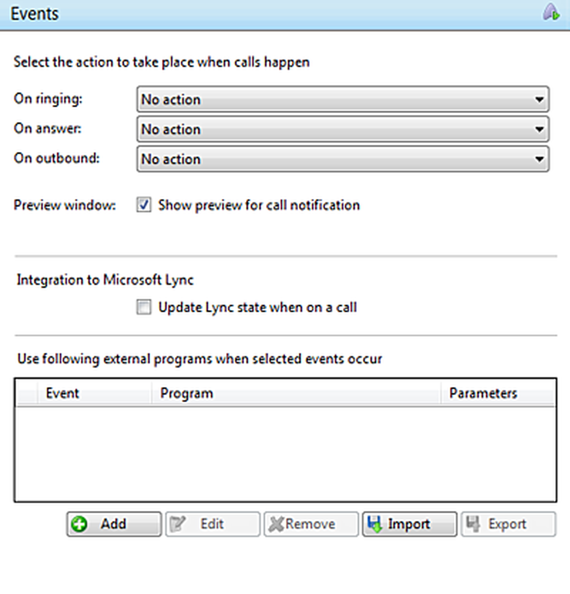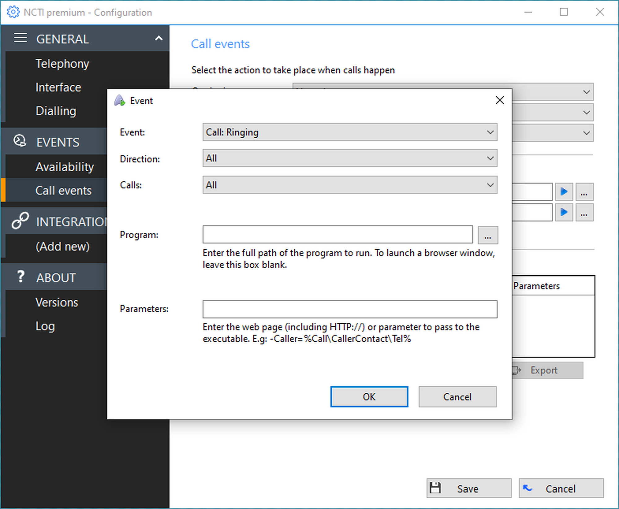 | Direction | Choose between incoming and outgoing calls. |