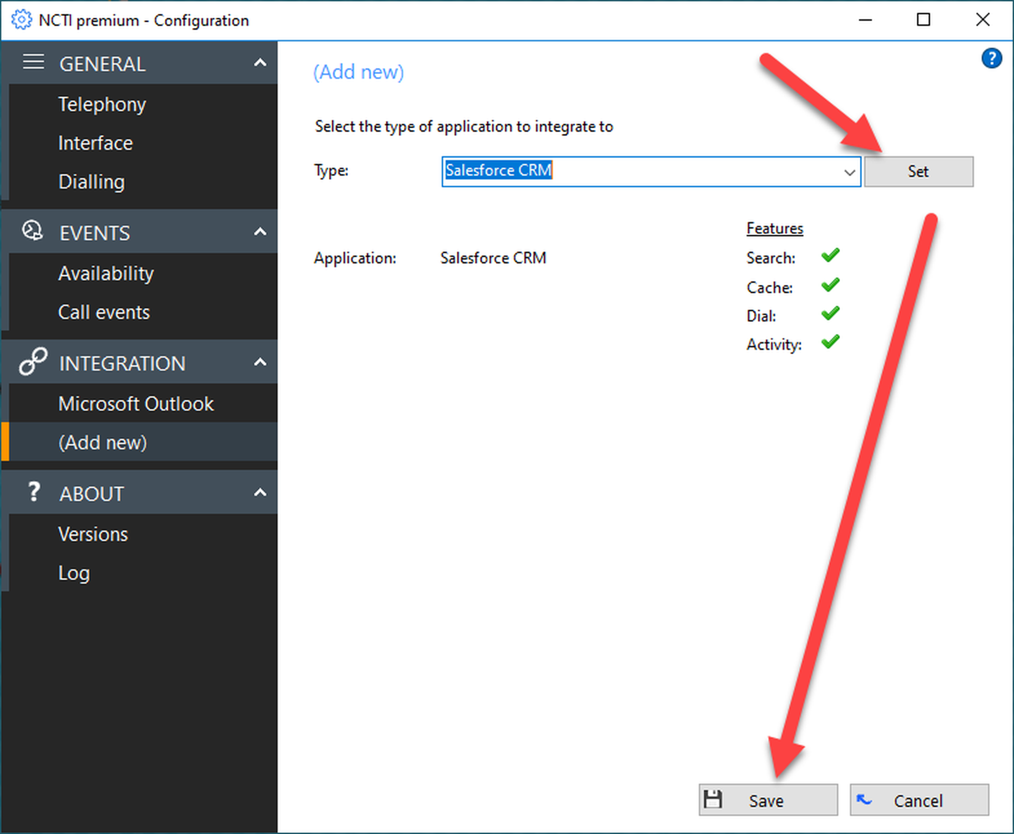 Add Salesforce and klick on Save.