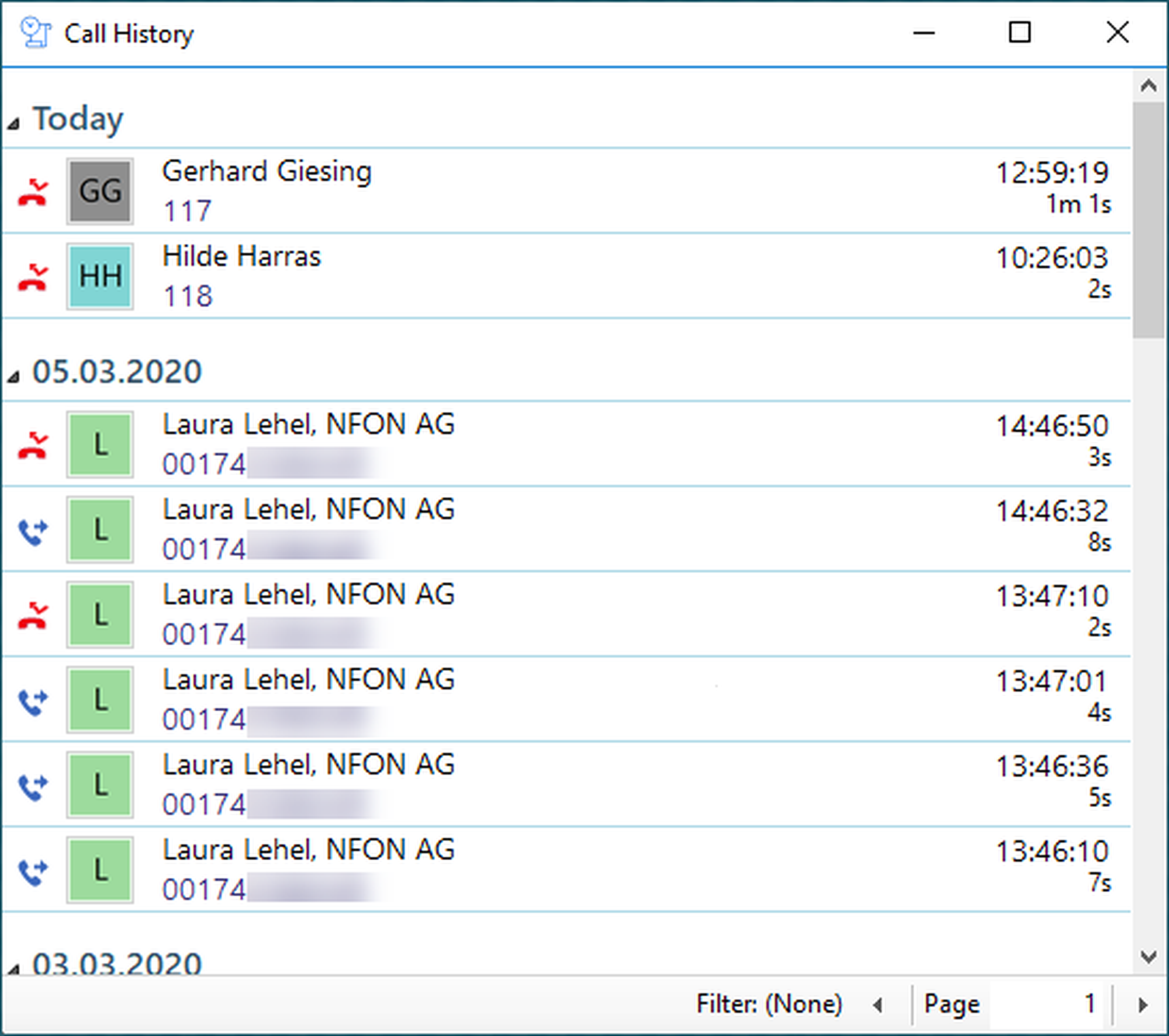- Click on Filter in the Call History.