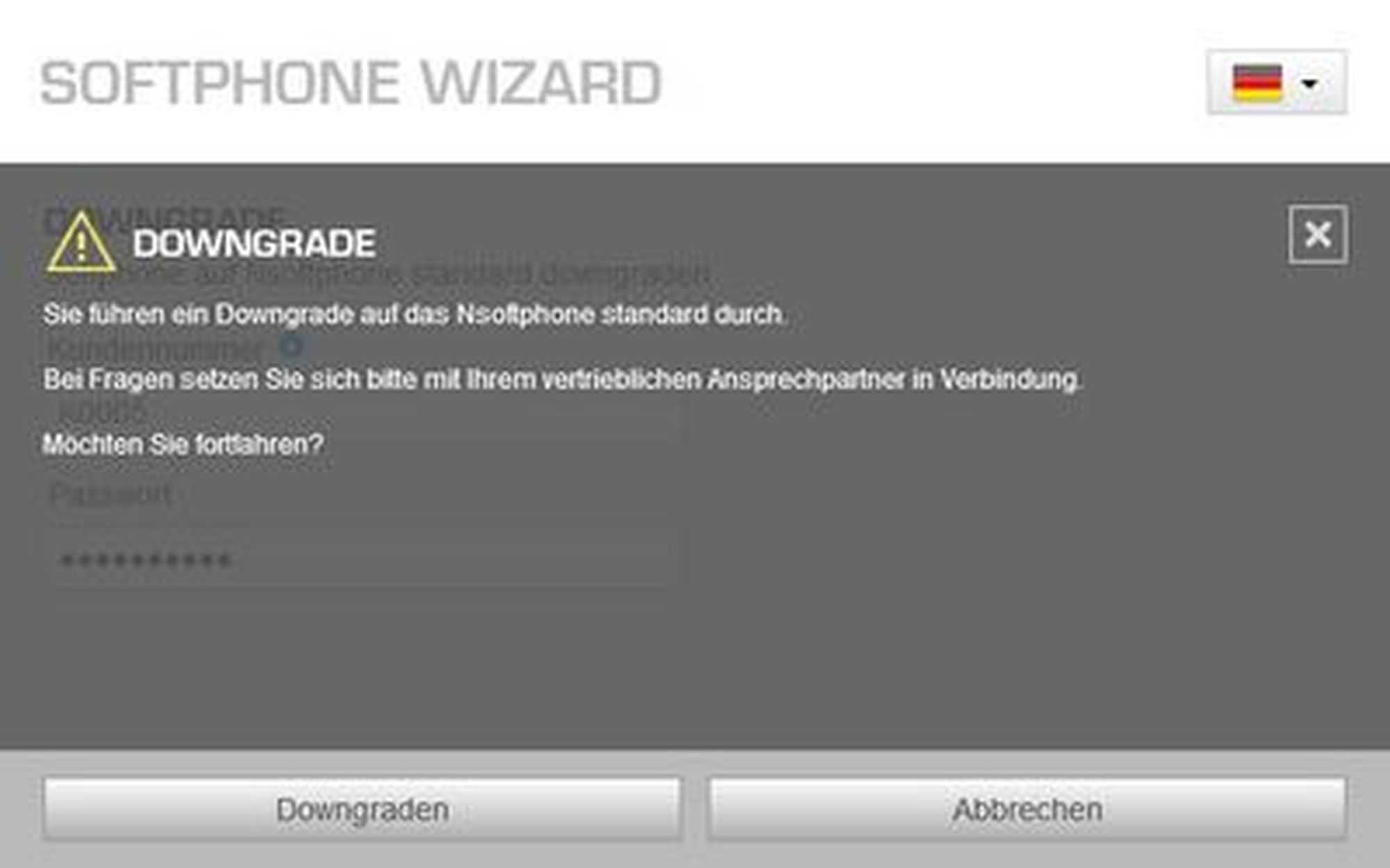 Your Nsoftphone premium has been successfully deregistered from the extension. Please click "Close". Afterwards, you'll be able to create another extension or to loggin an existing one. Then please click on the blue arrow on your main navigation panel as described above.