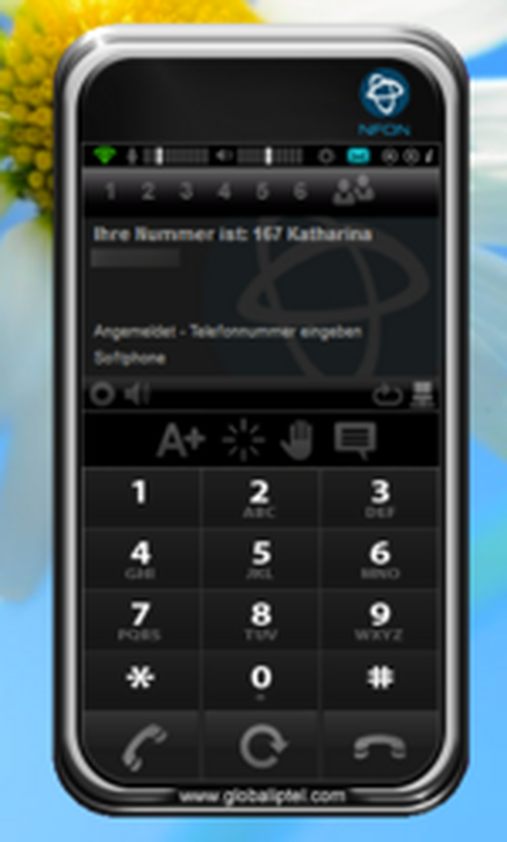 | The Nsoftphone premium software telephone is brought to front. | |