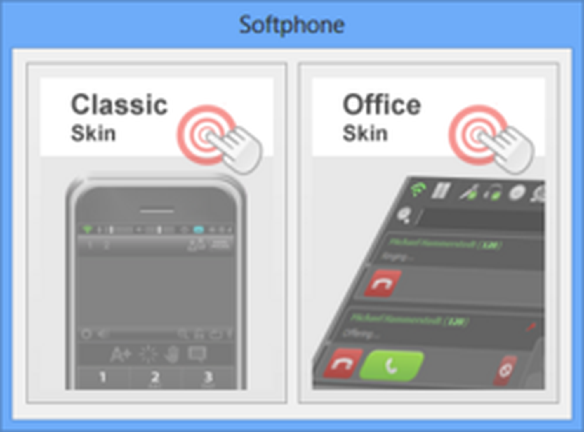 All features listed here are the available standard features by default. Enhanced features as well as an individual graphical user interface or special reportings are available on project basis (e. g. for call centers) based on specific project prices.