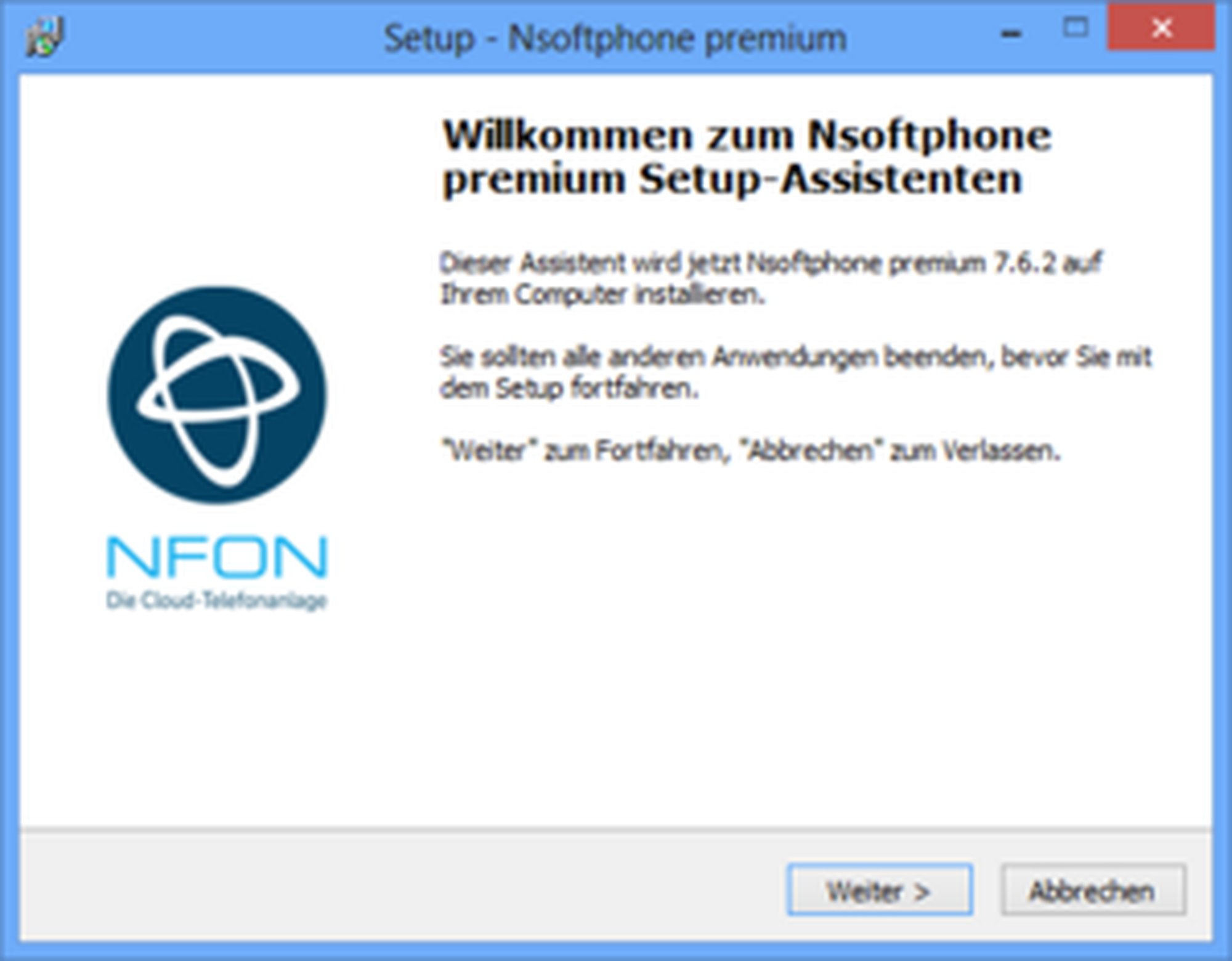 You will now be greeted by the set-up assistant of your Nsoftphone premium client.